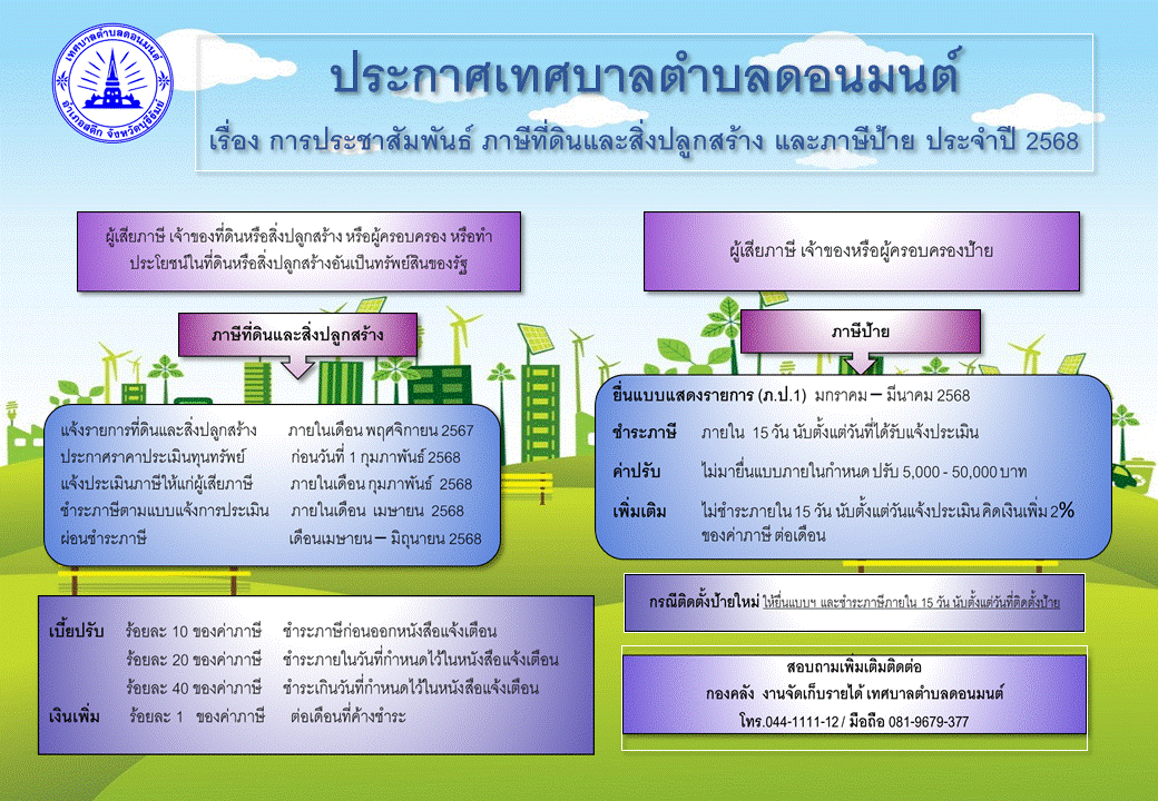 ประกาศ ภาษีที่ดินและสิ่งปลูกสร้าง และภาษีป้าย ประจำปี พ.ศ. 2568 [28 พฤศจิกายน 2567]